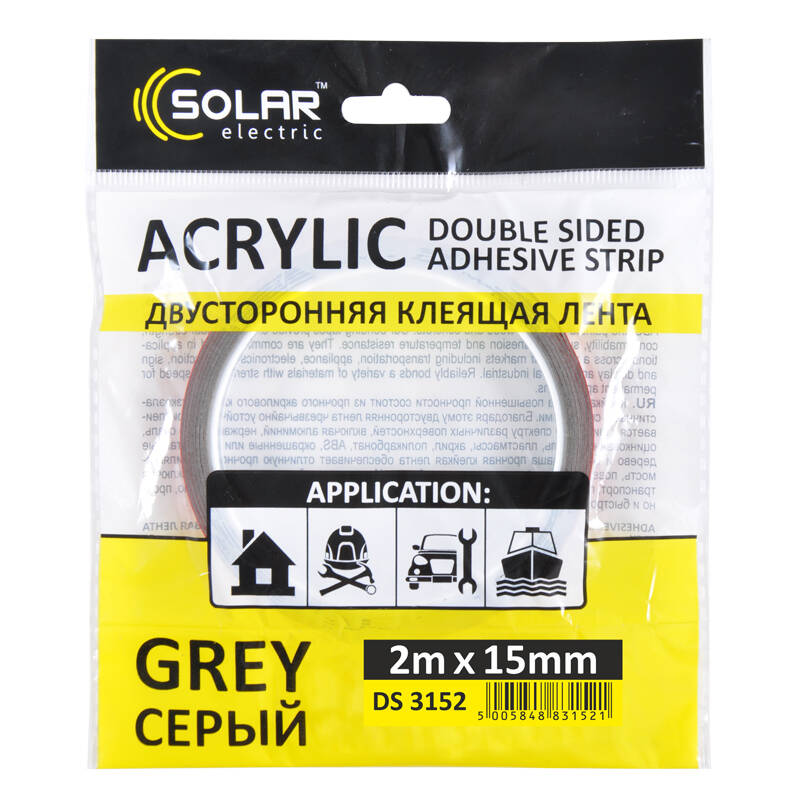 Скотч двусторонний SOLAR (DS3152) серый ACRYLIC (VHB) 2м x 15мм