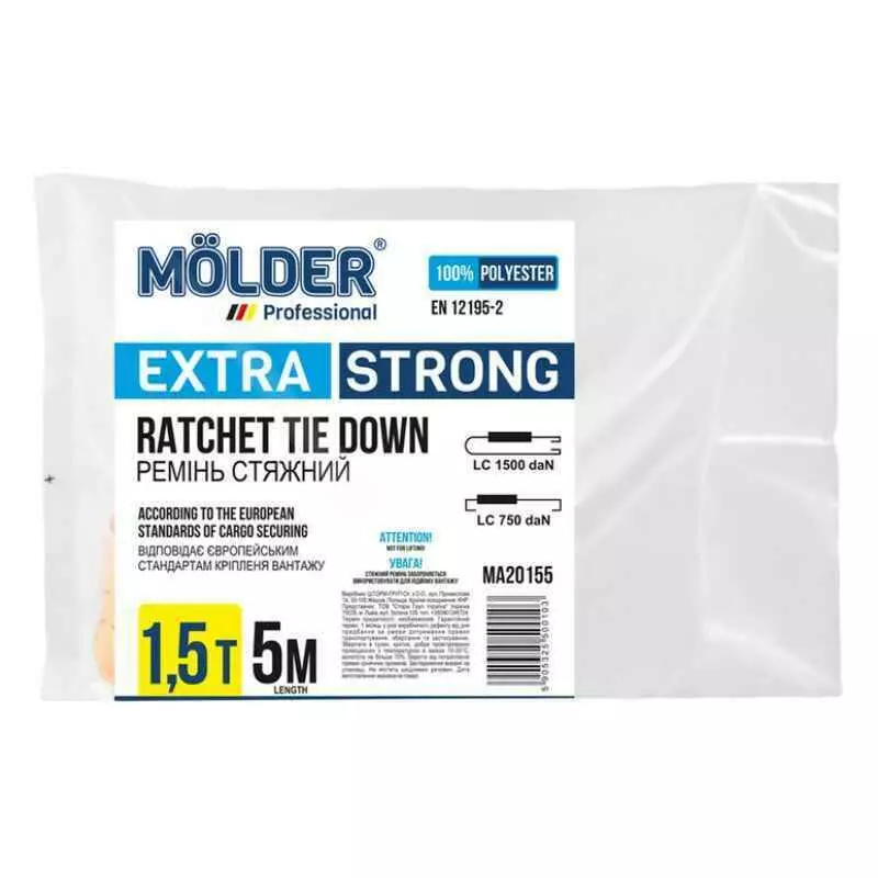 Стяжной ремень Molder 1.5т 5м – это прочный, надежный и удобный инструмент для безопасной фиксации грузов в самых различных сферах применения.