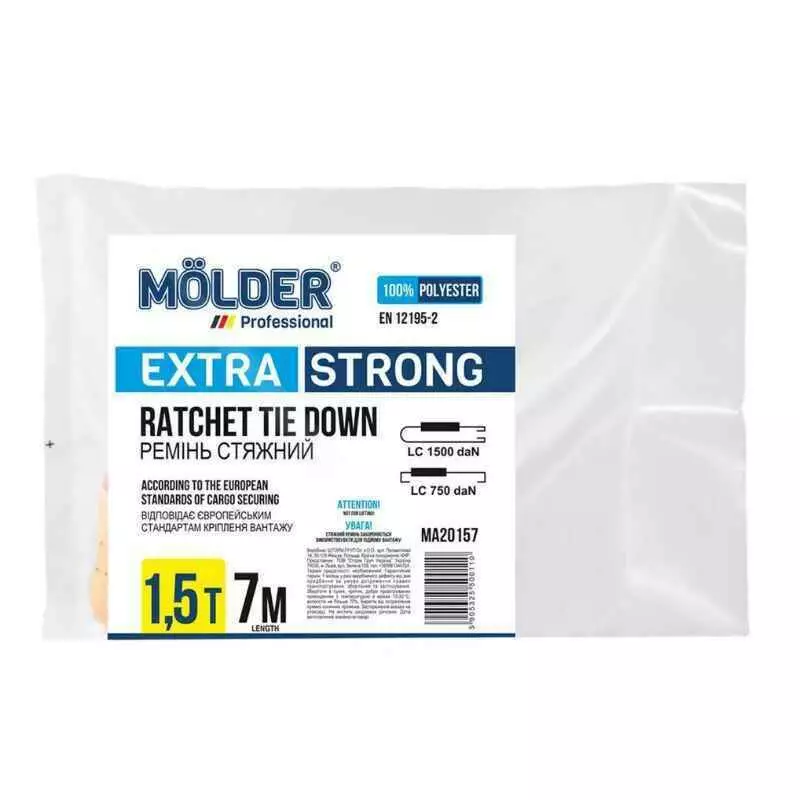 Стяжной ремень Molder обеспечивает надежную фиксацию груза, что предотвращает его смещение и падение во время транспортировки, обеспечивая безопасность вашего груза и окружающих.