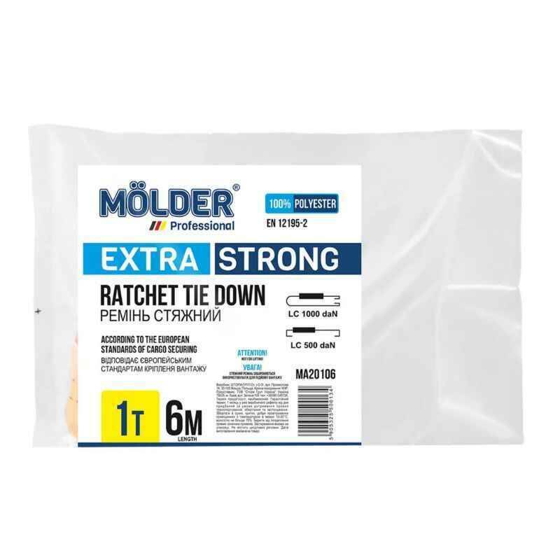 Стяжной ремень Molder изготовлен из высококачественного нейлона, который обеспечивает надежную фиксацию груза и долгий срок службы.