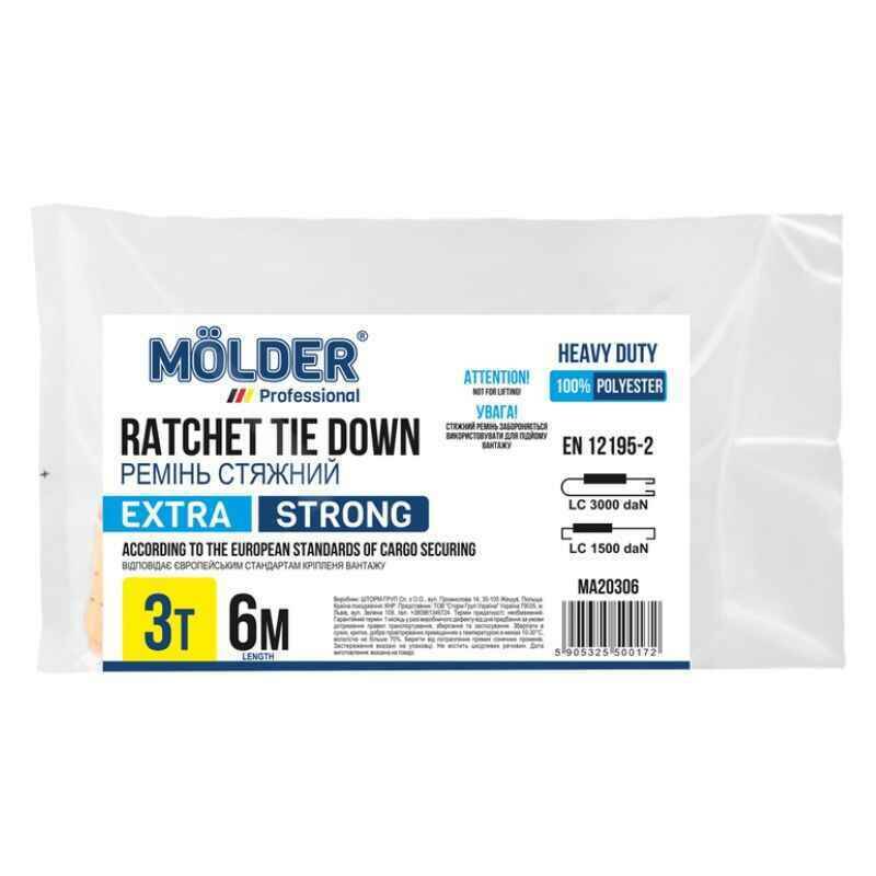Стяжной ремень Molder 3т 6м – это идеальное решение для надежного и безопасного крепления грузов при транспортировке.