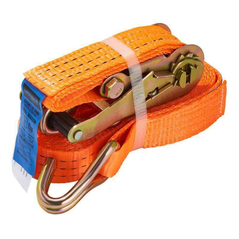 - Длина 6 метров – универсальное применение: Благодаря оптимальной длине ремня его можно использовать для крепления самых разных грузов, в том числе автомобилей, стройматериалов и оборудования.