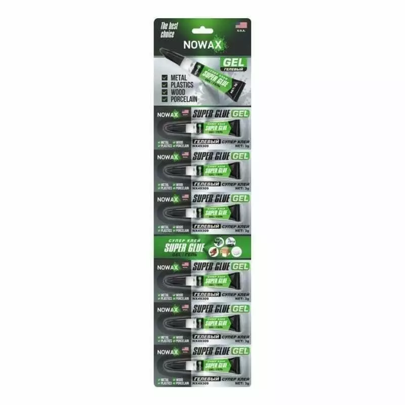 Суперклей гелевый 100% цианакрилат прозрачный NOWAX 3г (NX49309)