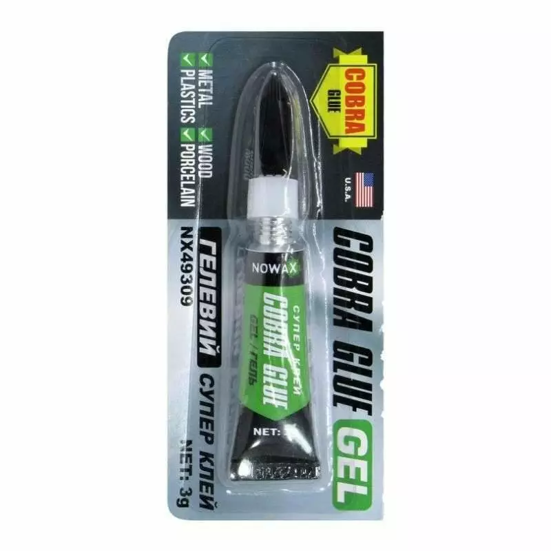 Универсальный секундный клей для быстрого комбинационного склеивания различных видов пластмасс, резины, металлов, дерева, фарфора, керамики, кожи, пробки, тканей, картона и бумаги. Не пригоден для склеивания полипропилена, полиэтилена, тефлонов и резины.