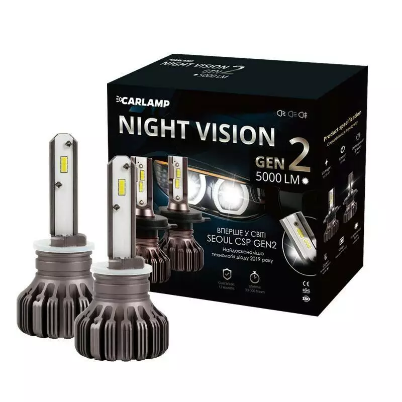 Характеристики светодиодной Лед автолампы Carlamp из серии Night Vision Gen2 H27/2