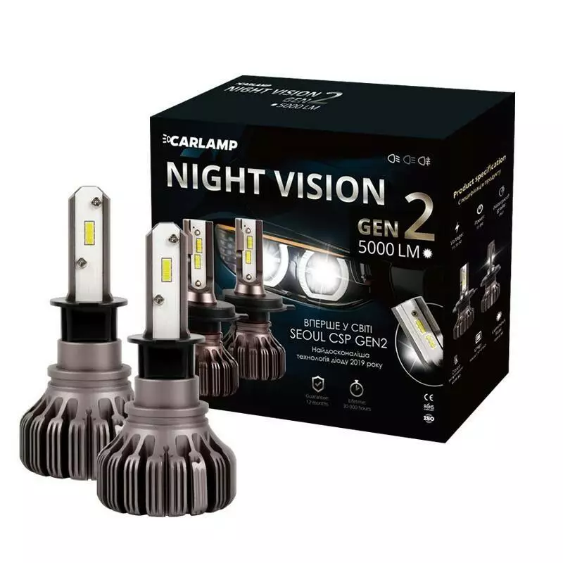 Night Vision Gen2 с цоколем H3 от Carlamp – серия светодиодных Led ламп для авто, являющаяся образцом того, как будет выглядеть автосвет. Новейшие технологии, использованные производителем с 10 летним опытом работы в отрасли, принесли свои плоды. В новых лампочках воплощены лучшие качества: усовершенствованный чип, продуманный дизайн, прочные материалы и превосходная спайка.