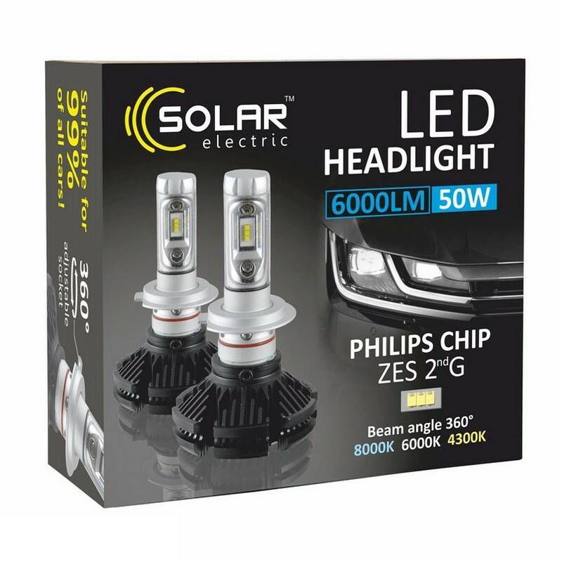 Светодиодные лампы H7 SOLAR 12/24V 6000Lm 6000K 50W Philips ZES (8807)