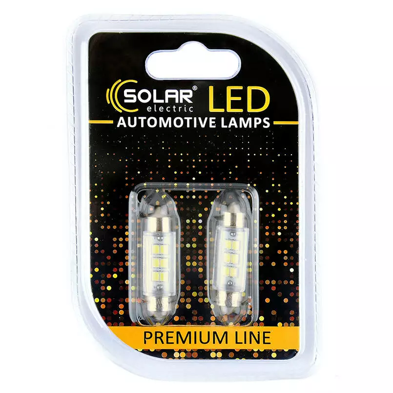 Светодиодные LED автолампы SOLAR Premium Line 12V SV8.5 T11x39 6SMD 2835 white блистер 2шт (SL1351)