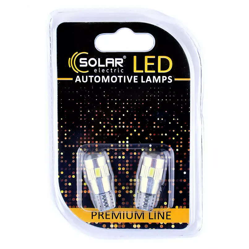 Светодиодные LED автолампы SOLAR Premium Line 12V T10 W2.1x9.5d 6SMD 5730 + lens CANBUS white блистер 2шт (SL1347)