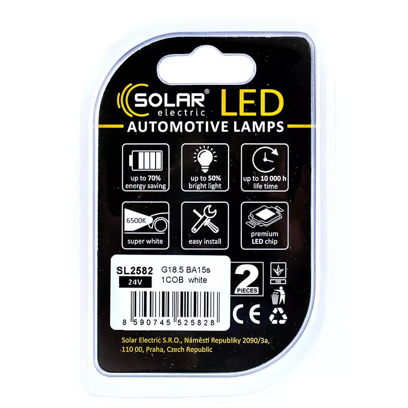 Светодиодные LED автолампы SOLAR Premium Line 24V G18.5 BA15s 1COB white блистер 2шт (SL2582)