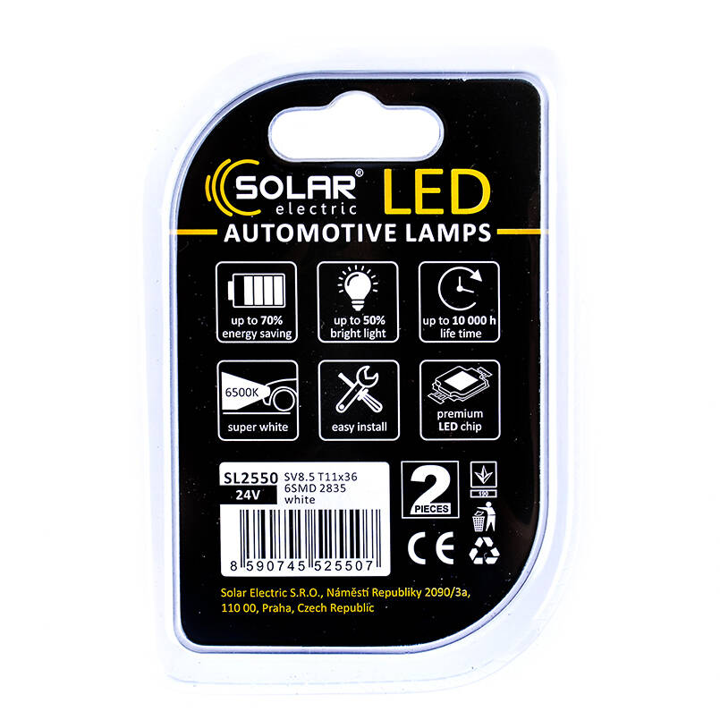 Светодиодные LED автолампы SOLAR Premium Line 24V SV8.5 T11x36 6SMD 2835 white блистер 2шт (SL2550)