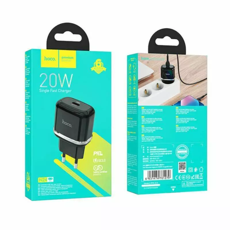 СЗУ HOCO Victorious single port charger N24 |1Type-C, 20W/3A, PD/QC| (black)
