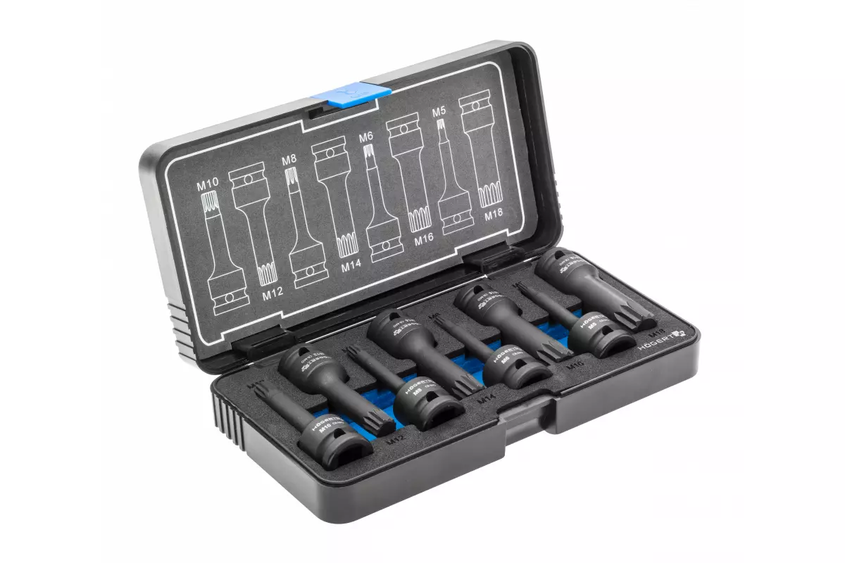 Торцевые головки, ударные spline, 8 шт.: M5, M6, M8, M10, M12, M14, M16, M18, 1/2", CrMo (HT6R006)
