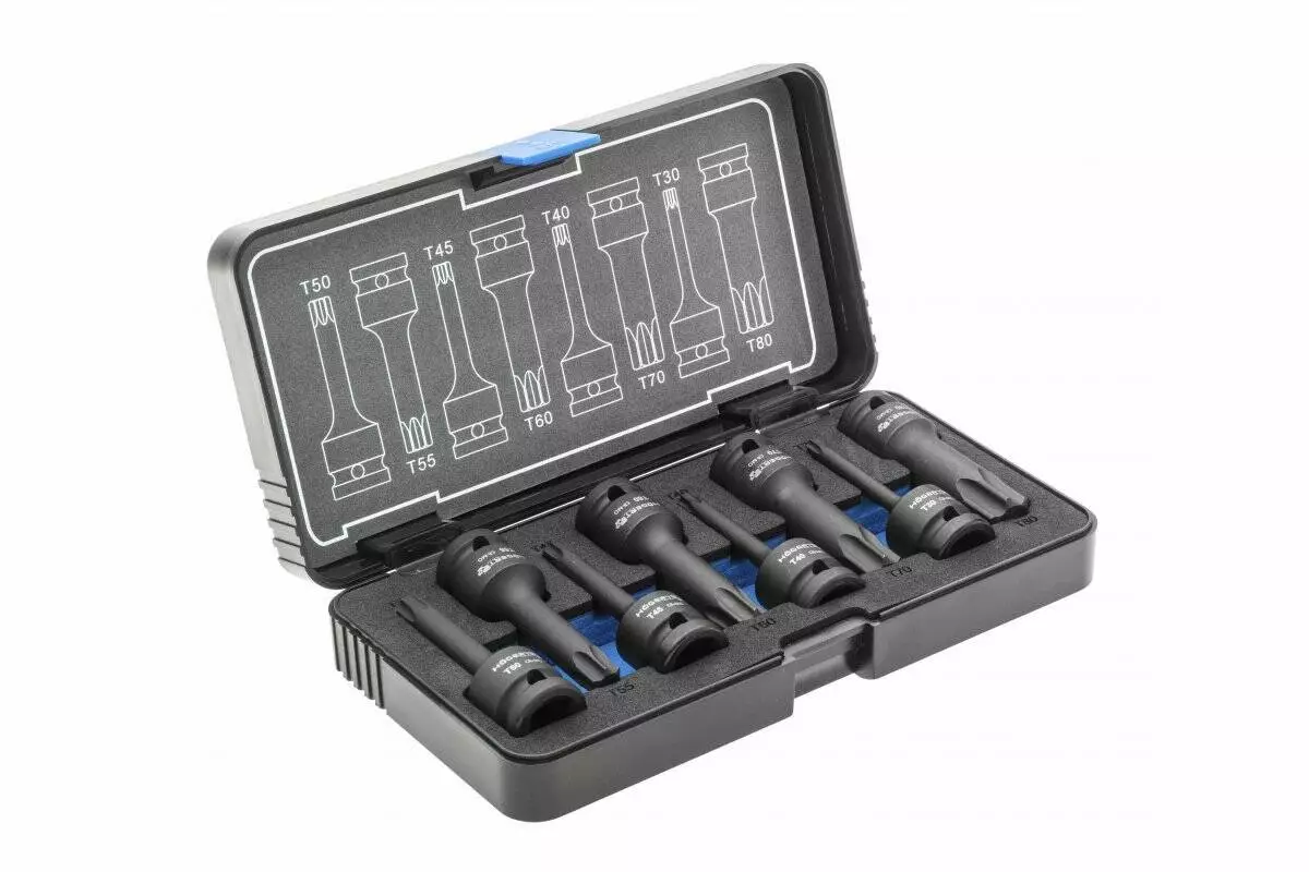Торцевые головки, ударные TORX, 8 шт.: T30, T40, T45, T50, T55,