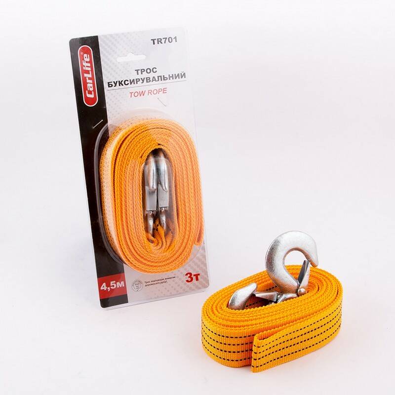 Для решение таких задач идеально подойдет Трос буксировочный CARLIFE 3 т 4,5 м блистер TR701 который обладает такими характеристикам: