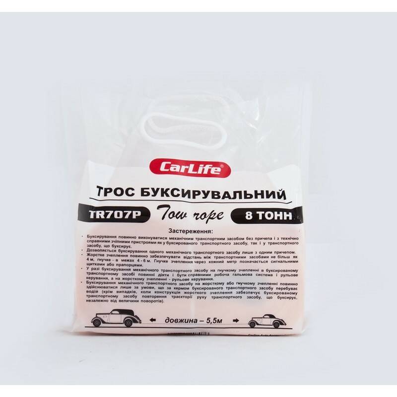 Для решение таких задач идеально подойдет Трос буксировочный CARLIFE 8 т 5,5 м TR707P который обладает такими характеристикам: