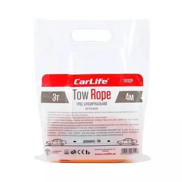 Для решение таких задач идеально подойдет Трос буксировочный CARLIFE 3 т 4 м пакет TR702P который обладает такими характеристикам: