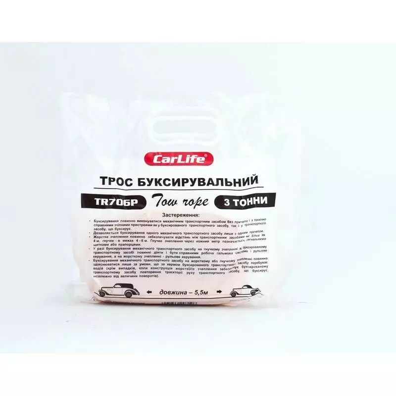 Для решение таких задач идеально подойдет Трос буксировочный CARLIFE 3 т 5,5 м пакет TR706P который обладает такими характеристикам: