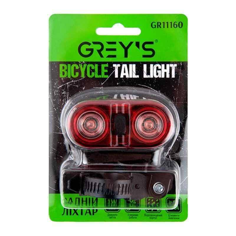 Задний фонарь на велосипед 2 светодиода Grey's 2хAAA влагостойкий 3 режима до 5 часов работы (GR11160)