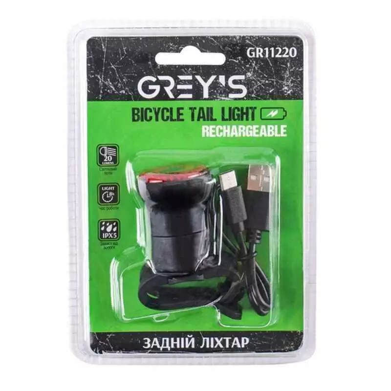 Задний фонарь на велосипед 20 светодиодов 20Lm Grey's 400mAh IPX4