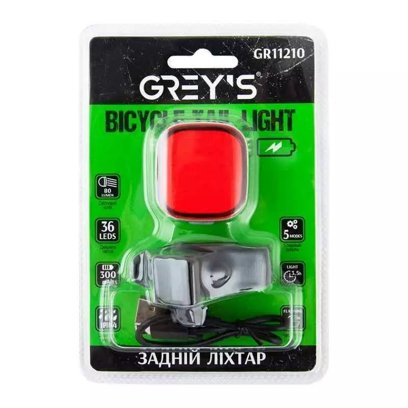 Задний фонарь на велосипед 36 светодиодов 80Lm Grey's 300mAh IPX4 5