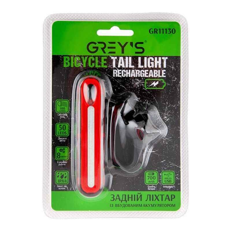 Задний фонарь на велосипед 50 светодиодов 100Lm Grey's 700mAh IPX4 8 режимов до 7 часов работы (GR11130)