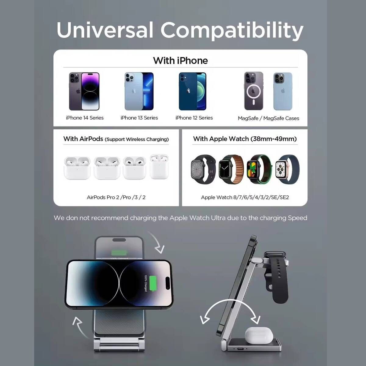 Эта зарядная станция совместима с различными устройствами, включая смартфоны, планшеты, наушники и другие гаджеты. Вы сможете заряжать все свои устройства с помощью одного компактного устройства.