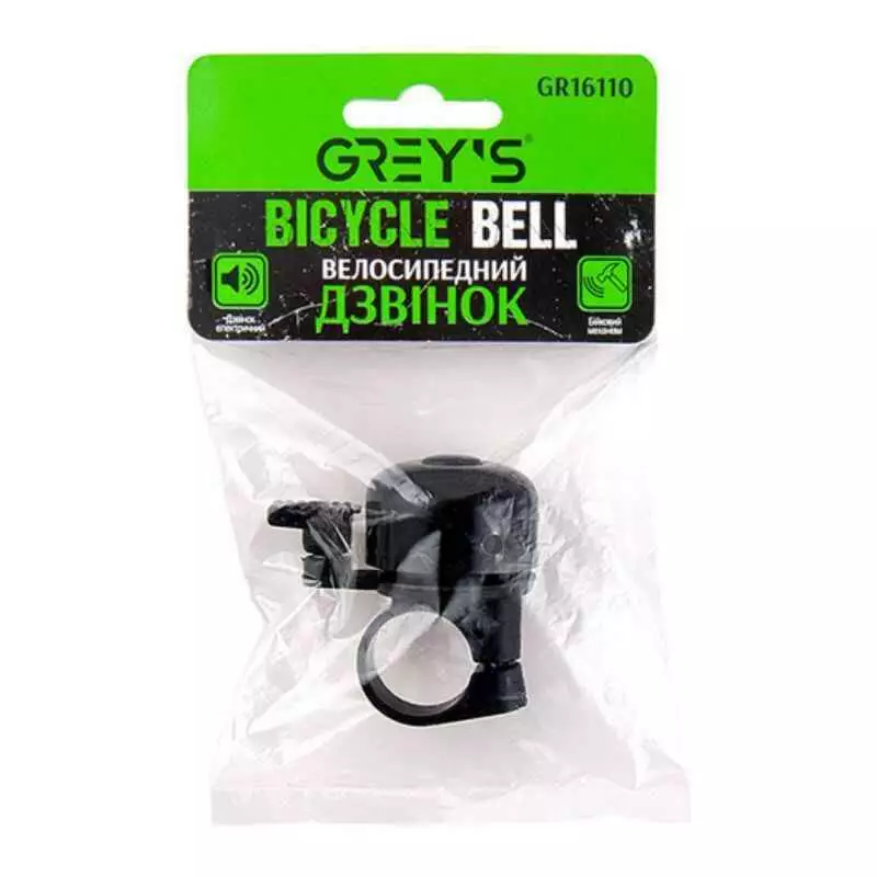 Звонок велосипедный Grey's велозвонок механический с креплением черный (GR16110)
